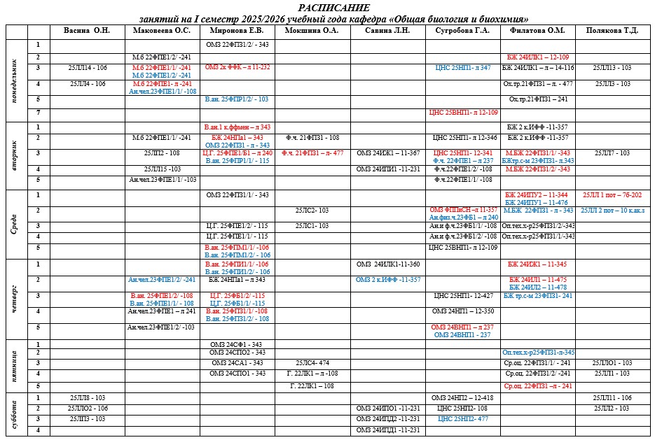 Часы приема зав. кафедрой Общая биология и биохимия: вт., чт. 14:00 - 17:00, ауд. 15-224