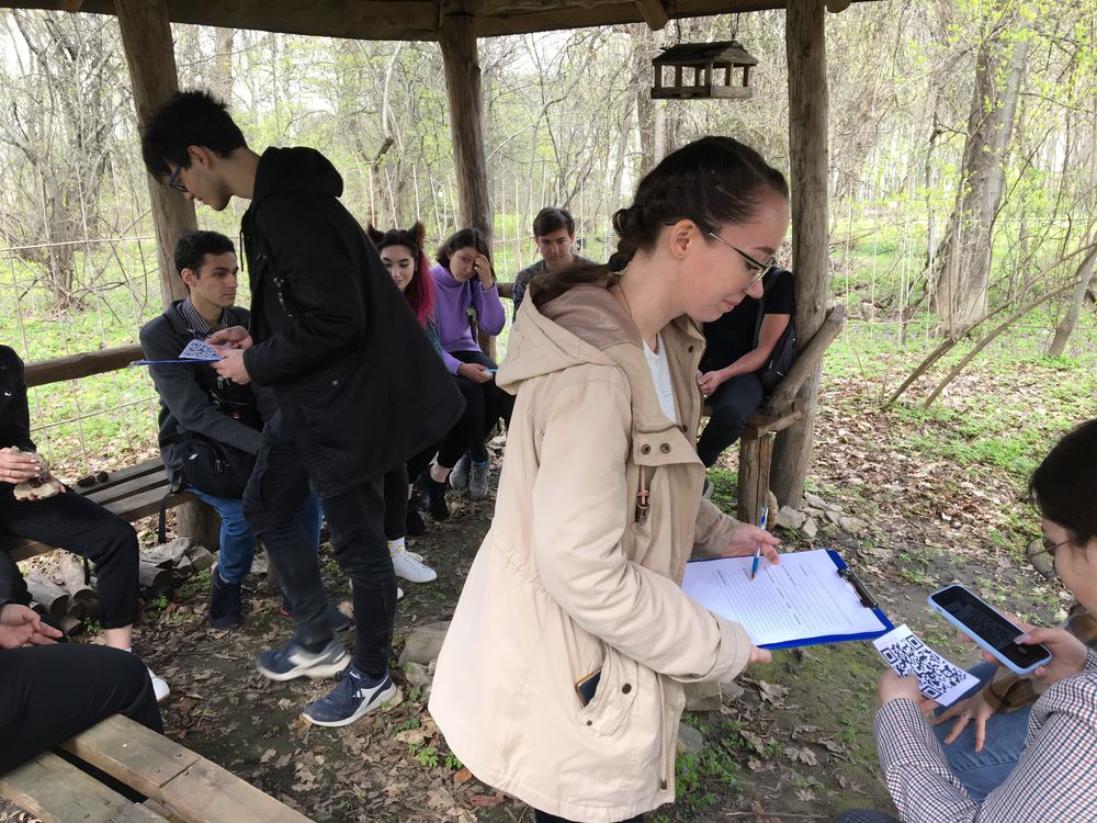 Вот над этими вопросами я размышляла, разрабатывая интерактивную экскурсию «Весенние явления в жизни растений: эфемероиды». И пришла мысль с QR-кодами. Сканируя его, участники экскурсии, разбившись на команды и соревнуясь между собой, выполняют задания – находят и определяют растения, работают с фотографиями, картами, текстовой информацией. А учитель консультирует, направляет, приободряет. Это была первая подобная экскурсия в таком ключе.