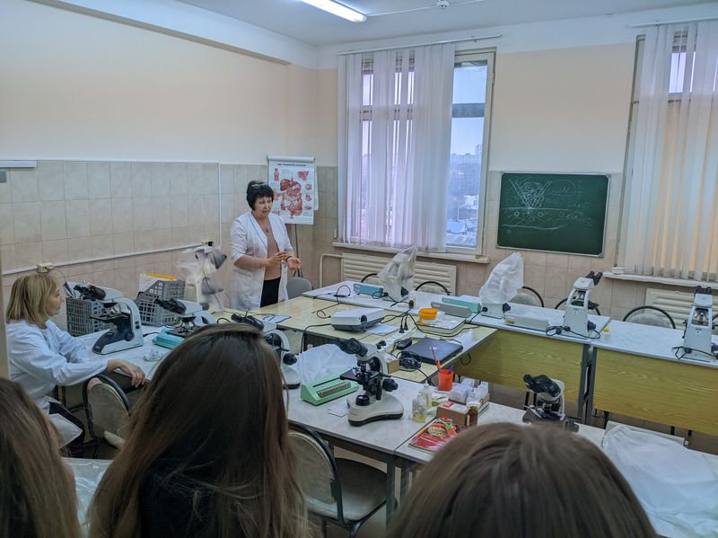 25.11.2022 студенты группы 20ФБ2.1 (направление подготовки 06.03.01 Биология, профиль Биохимия) посетили с ознакомительной экскурсией лаборатории кафедры медицинской микробиологии и лабораторной медицины Пензенского института усовершенствования врачей - филиала РМАНПО Минздрава России. Доценты кафедры Левашова Ольга Анатольевна и Дружинина Татьяна Анатольевна рассказали о направлениях работы кафедры, о роли биолога как специалиста лабораторной медицины, показали основное оборудование, используемое в медицинских лабораториях, показали интересные микропрепараты биопсии лёгкого, гонореи, малярии и т. п. Столь раннее знакомство студентов, только приступивших к изучению биохимии, с кафедрой медицинской микробиологии и лабораторной медицины очень важно, т. к. позволяет обучающимся получить представление о возможных путях профессионального развития. На базе данной кафедры организованы курсы общего усовершенствования биологов по клинической лабораторной диагностике, позволяющие в дальнейшем работать в медицинских лабораториях различного профиля.