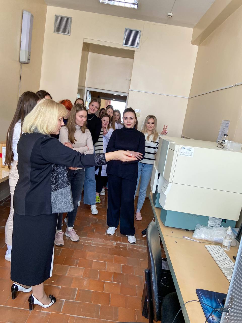 После лекции Надежда Ивановна организовала небольшую экскурсию по лабораториям ЦНИЛ, в ходе которой студенты познакомились с новейшим оборудованием, активно применяемым для исследований, которые ведутся в рамках научно-исследовательской работы, а также с возможностью применения подобного оборудования в диагностических целях.