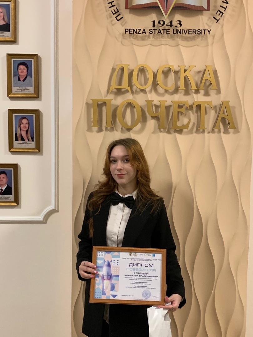 15 декабря в торжественной обстановке были подведены итоги Конкурса научных достижений студентов «Будь в науке первым!», организованный нашим университетом. В номинации «Лучший инновационный студенческий проект» (секция «Проекты в области общественных и гуманитарных наук») дипломом II степени была отмечена работа студентки группы 21 ФБ1 Назиной Яны «Волшебница Изумрудного сада».
