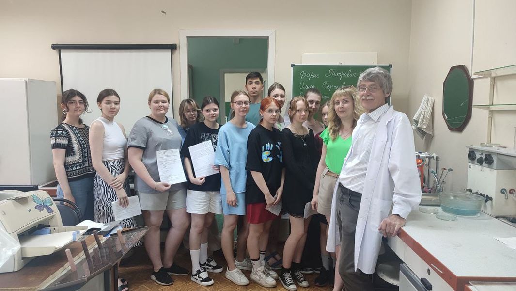 Под руководством доцента кафедры Заплатина Бориса Петровича ребята познакомились с устройством микробиологической лаборатории, техникой определения морфологических типов бактерий.
