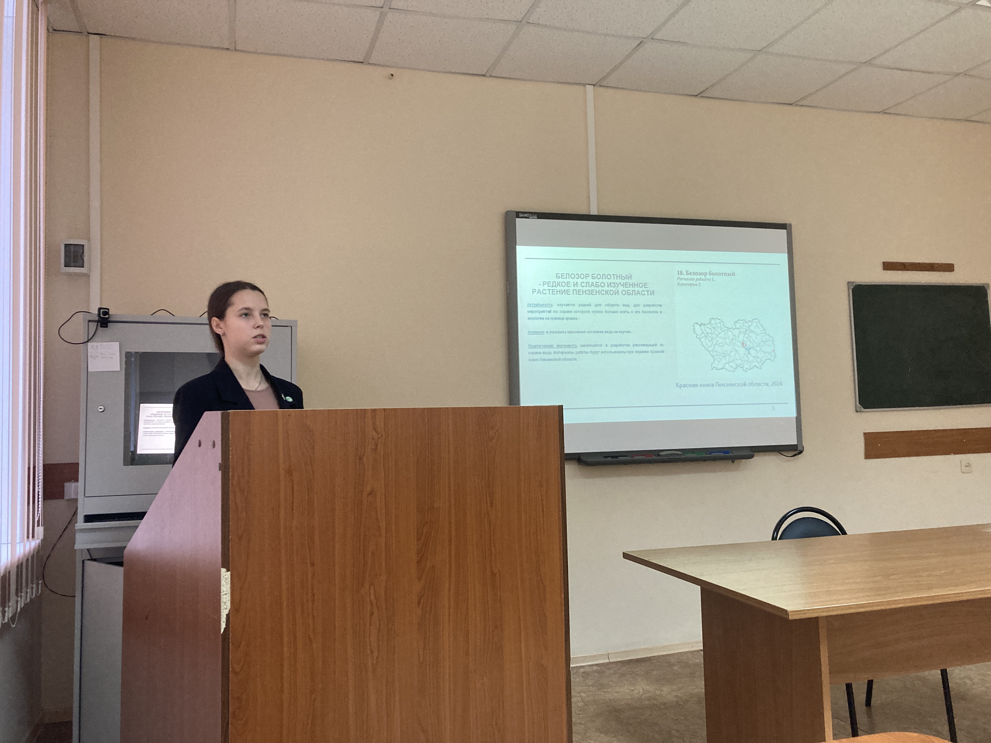 6 ноября состоялось очередное заседание СНО «Прикладная ботаника». К студентам, углубленно интересующимся наукой о растениях, присоединились школьники Губернского лицея. С докладом выступила ученица 9 класса этого лицея Мария Храмова со своей научно-исследовательской работой «Онтогенез редкого растения Пензенской области белозора болотного в условиях засоления». Мария принимала участие в летней экспедиции на «Ольшанский солонец» вместе со студентами-первокурсниками, и теперь подвела итоги своей работы. Маша давно сотрудничает с нашей кафедрой, имеет большой опыт выступлений на городских и общероссийских олимпиадах и конференциях. Доклад заинтересовал слушателей, встреча была очень результативной для всех. Мы желаем Маше успешно представить свою работу на различных конкурсах и надеемся на плодотворное сотрудничество!